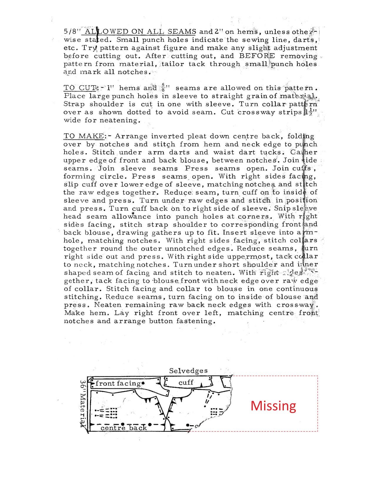 1950s Tailored Blouse Top Sewing Pattern Bust 38 Pdf Etsy